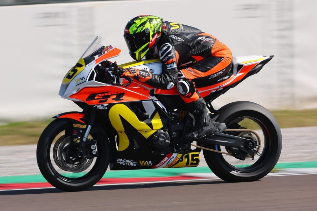 On the second day we received our allocated Yamaha R7. We missed some track time as Danny and DK got busy by going through her and putting in our base setting while I dressed her in our stunning GR Black and Orange livery. Both Clare and Chloe kept busy learnjng about the new Championship, Track and facilities.